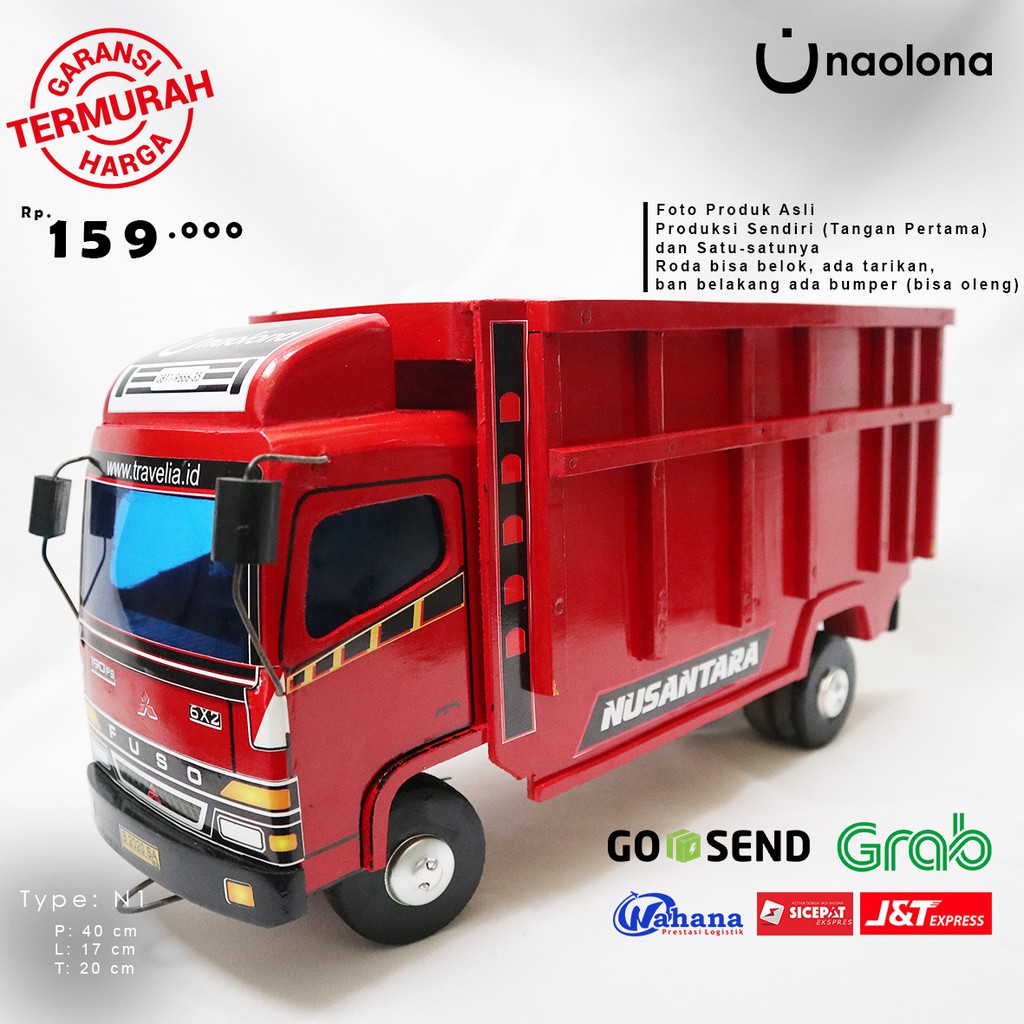 Miniatur Mobilan Truk Canter Jadul Kayu Warna Merah Naolona Shopee Indonesia